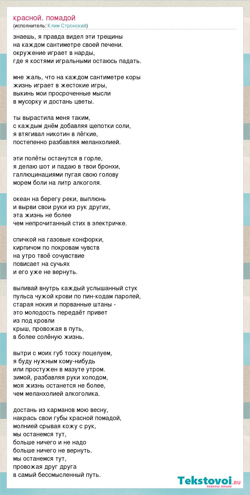 А как ты думаешь, о чем песня "Красной. помадой" ?