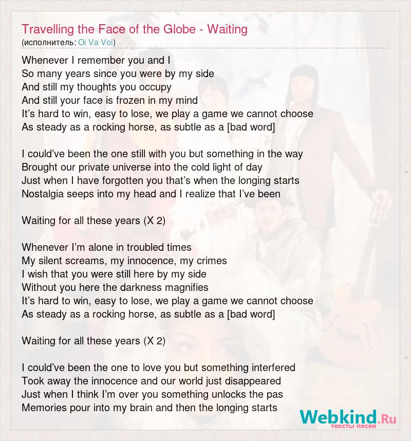 А как ты думаешь, о чем песня "Travelling the Face of the Globe - Waiting" ?