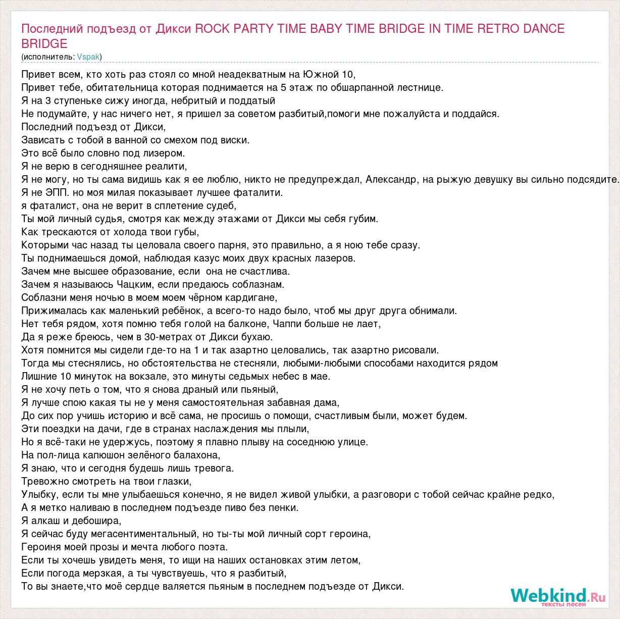 Последний подъезд от Дикси ROCK PARTY TIME BABY TIME BRIDGE IN TIME RE