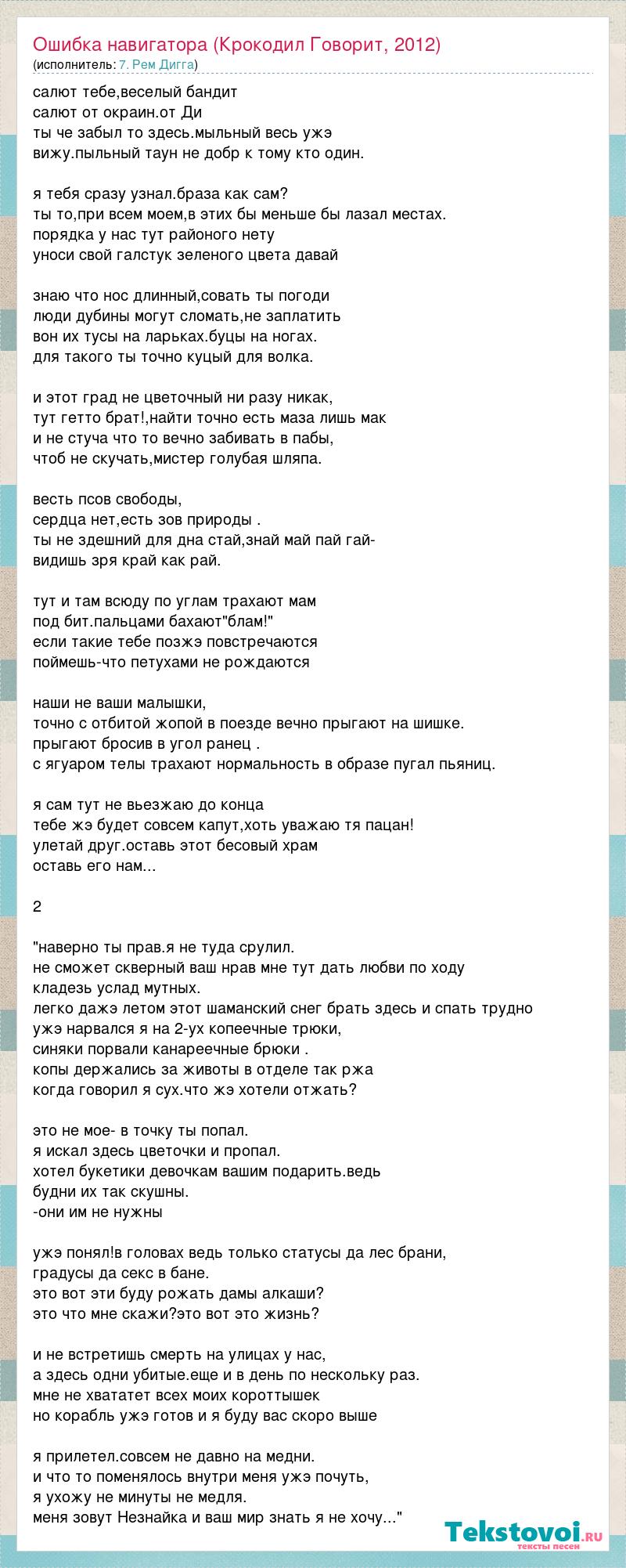А как ты думаешь, о чем песня "Ошибка навигатора (Крокодил Говорит, 2012)" ?