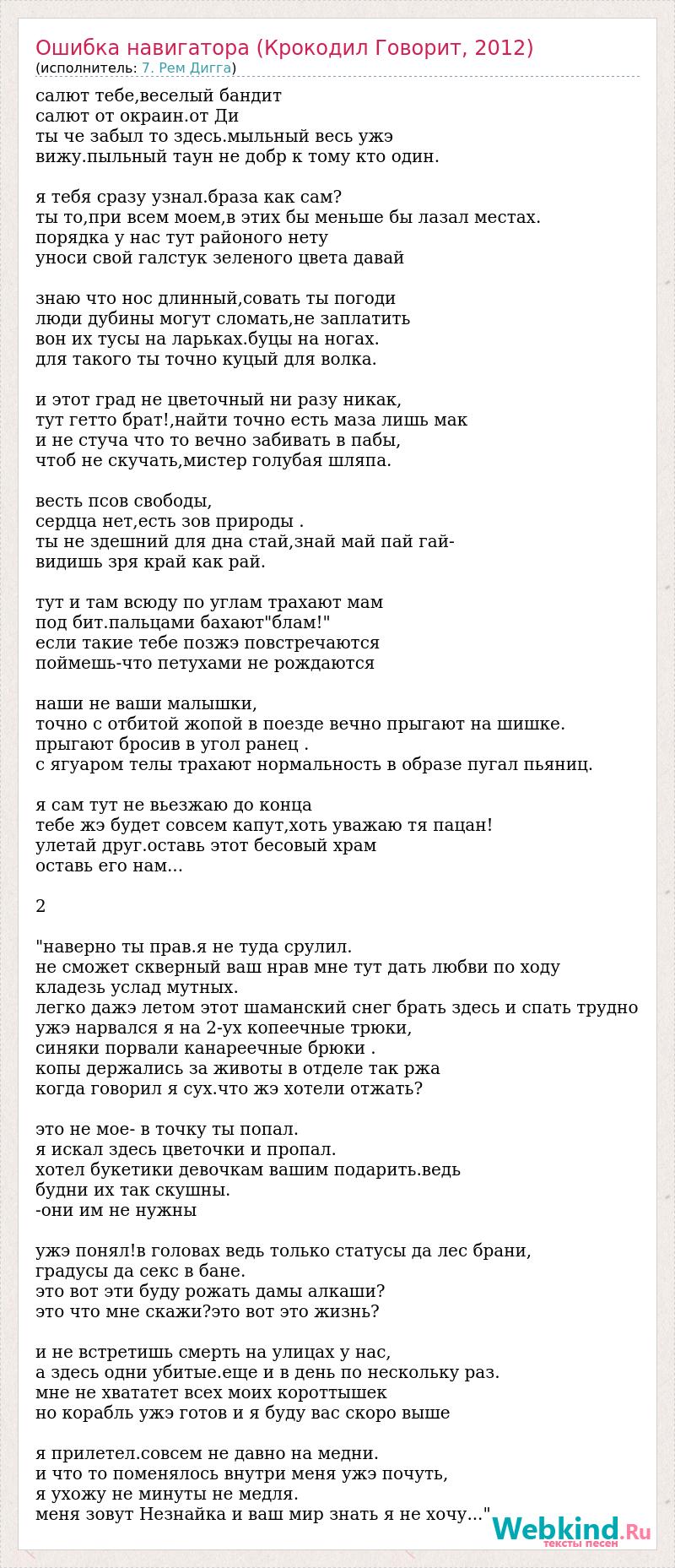 А как ты думаешь, о чем песня "Ошибка навигатора (Крокодил Говорит, 2012)" ?