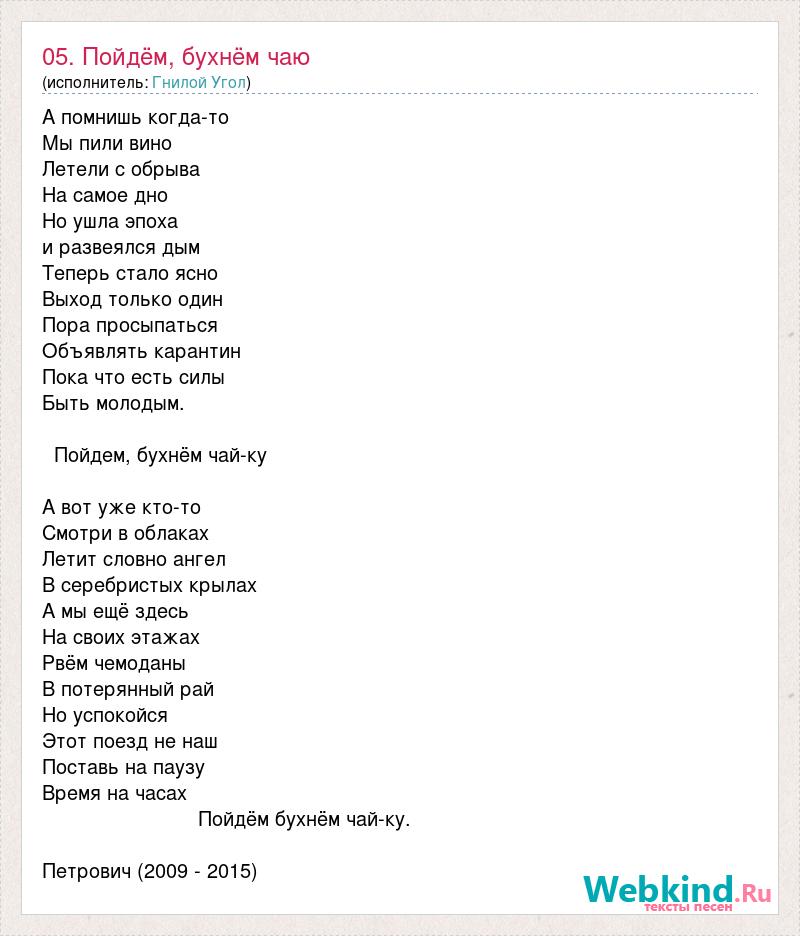 А как ты думаешь, о чем песня "05. Пойдём, бухнём чаю" ?