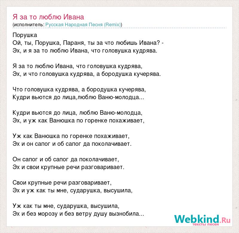 А как ты думаешь, о чем песня "Я за то люблю Ивана" ?