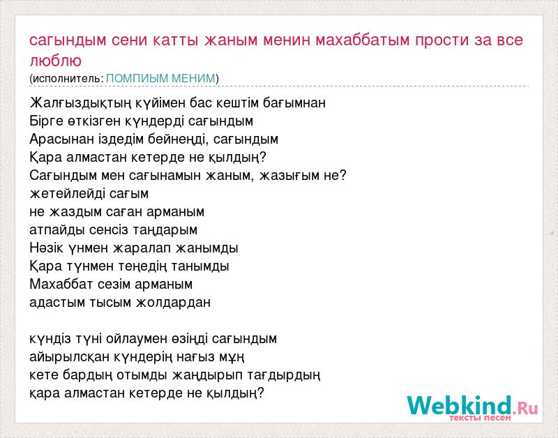 А как ты думаешь, о чем песня "Сагындым сени катты жаным менин махаббатым прости за все люблю" ?