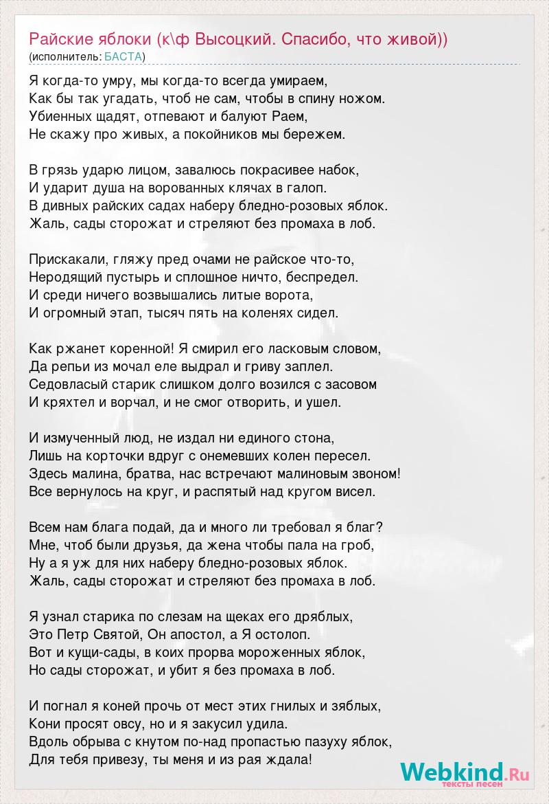 А как ты думаешь, о чем песня "Райские яблоки (к\ф Высоцкий. Спасибо, что живой))" ?