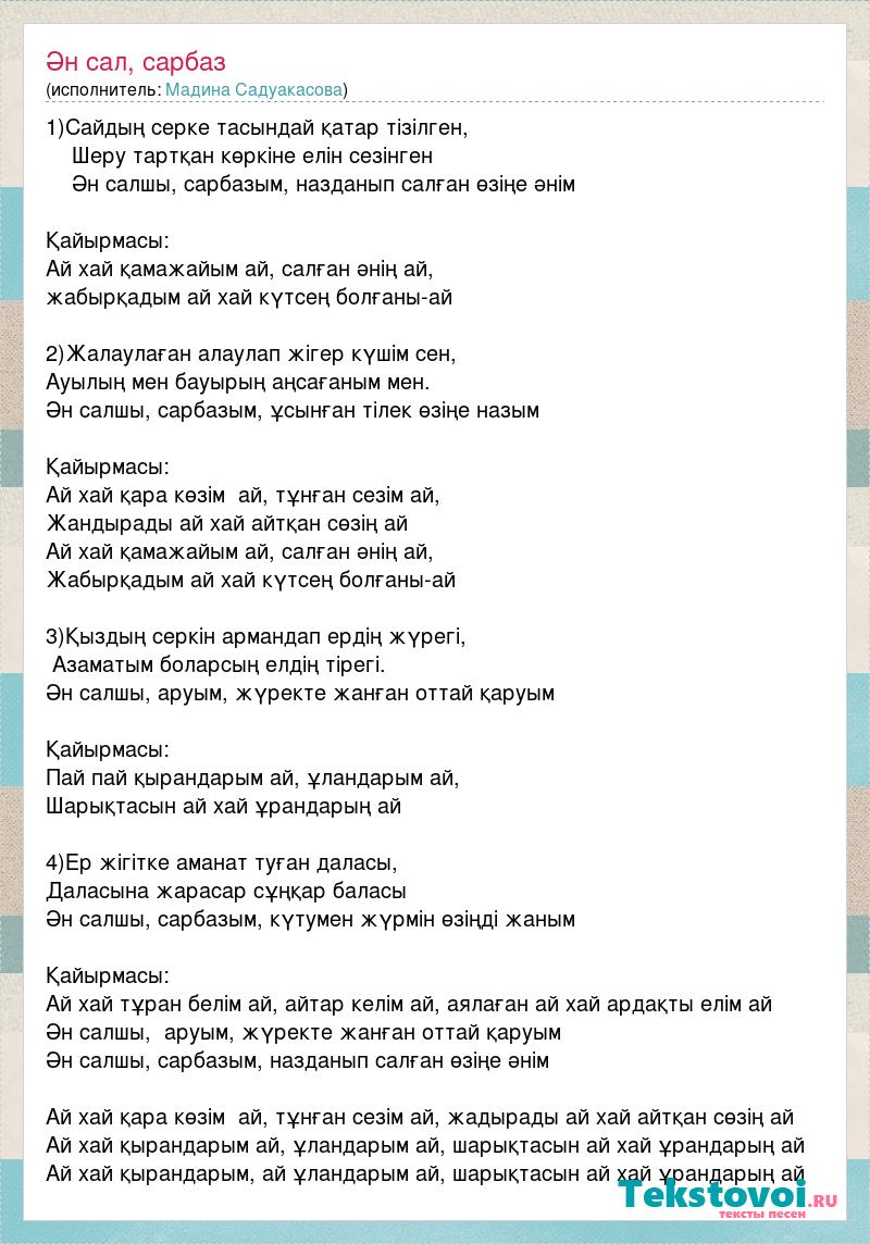 Ән салшы, сарбазым, назданып салған өзіңе әнім