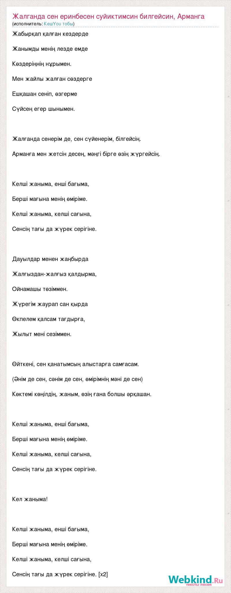 Жалганда сен еринбесен суйиктимсин билгейсин, Арманга мен жетсем дейсин манги би