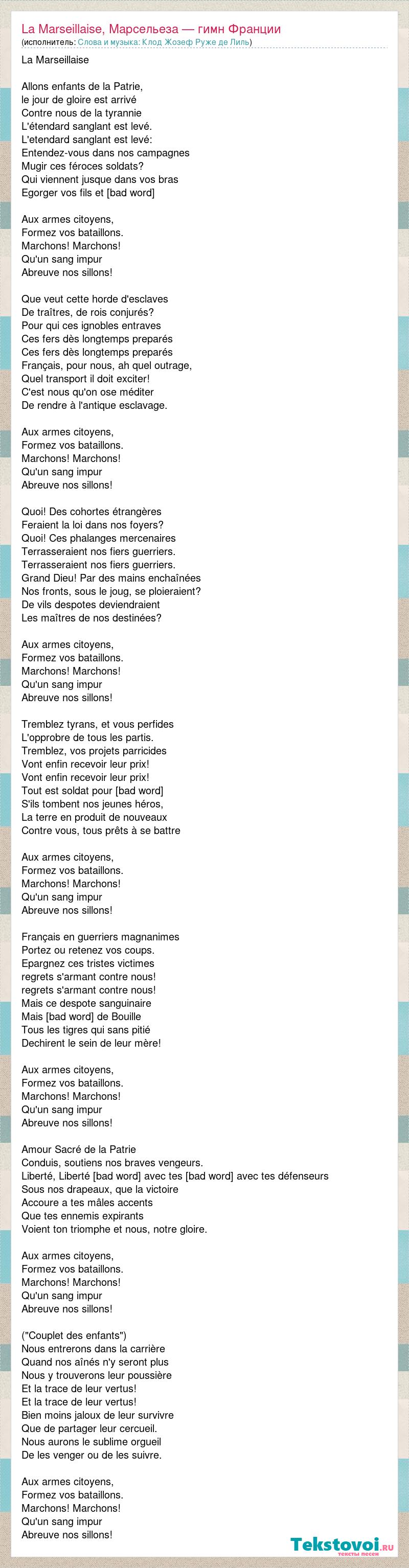 Слова и музыка: Клод Жозеф Руже де Лиль