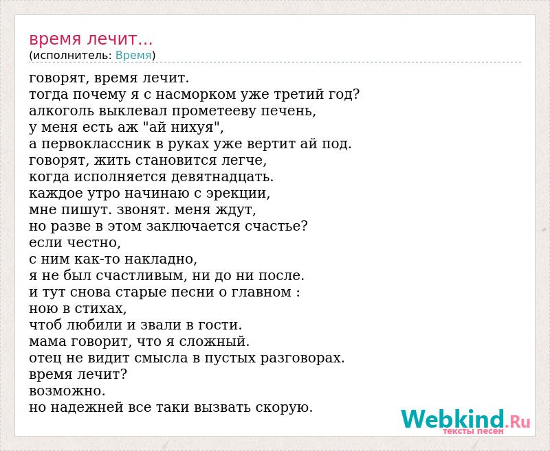 А как ты думаешь, о чем песня "Время лечит..." ?