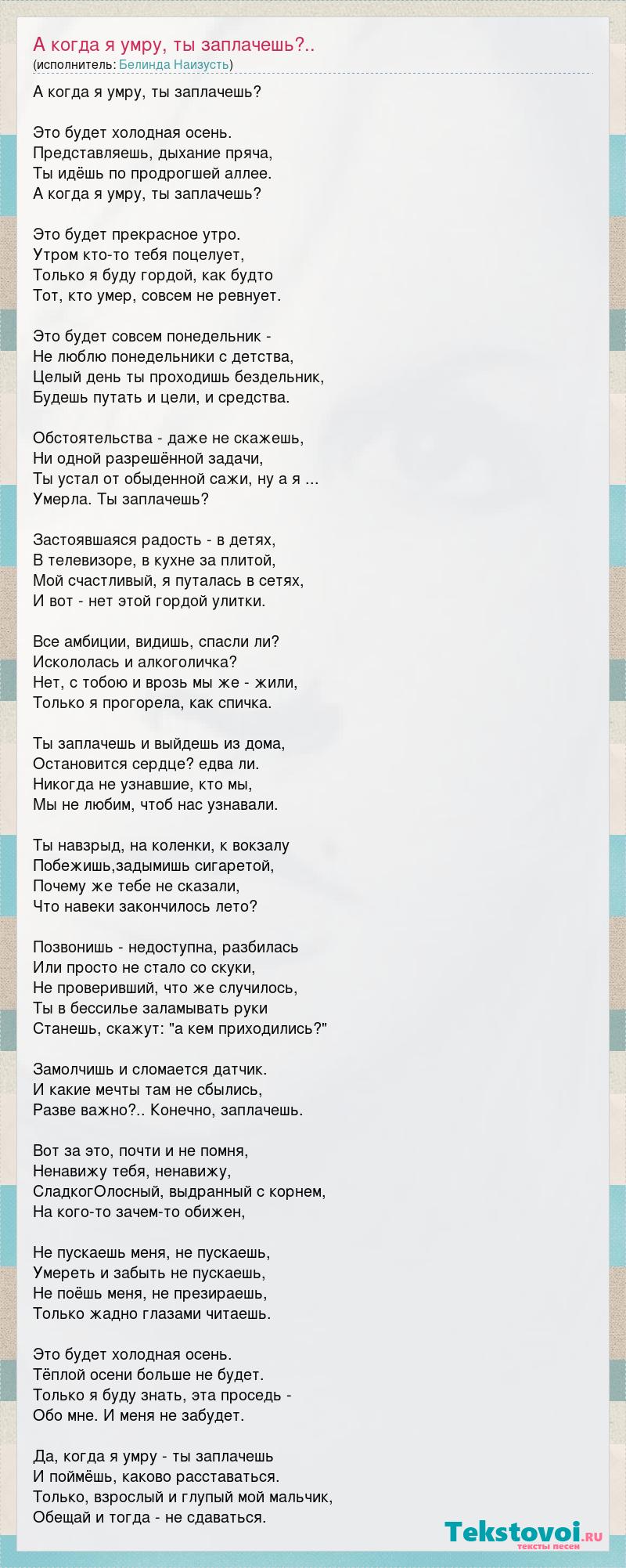 А как ты думаешь, о чем песня "А когда я умру, ты заплачешь?.." ?