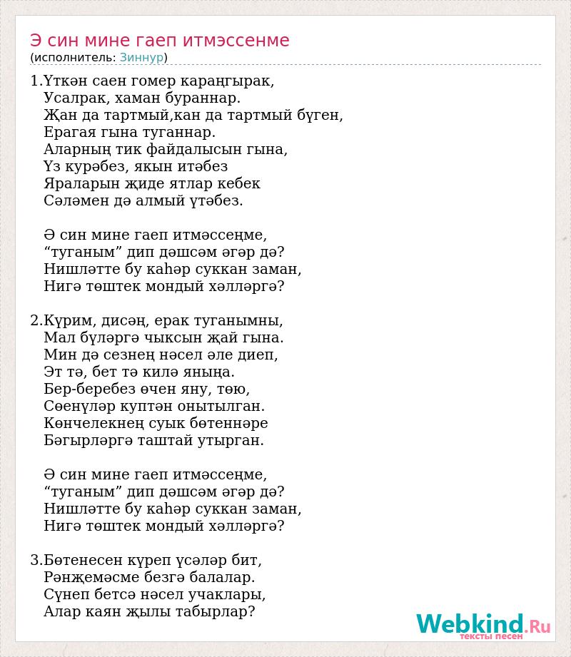 А как ты думаешь, о чем песня "Э син мине гаеп итмэссенме" ?