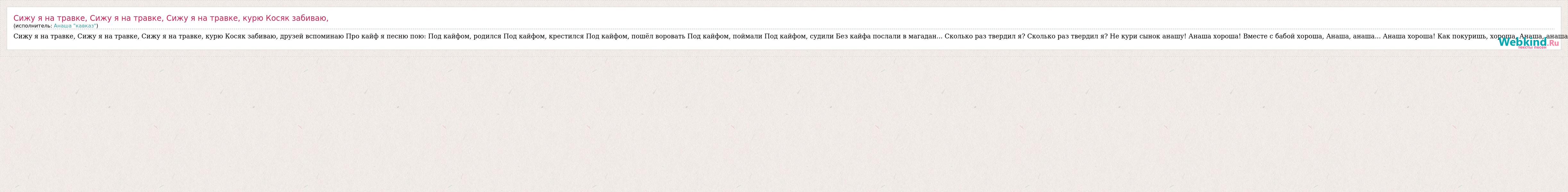 Сижу я на травке, Сижу я на травке, Сижу я на травке, курю Косяк забив