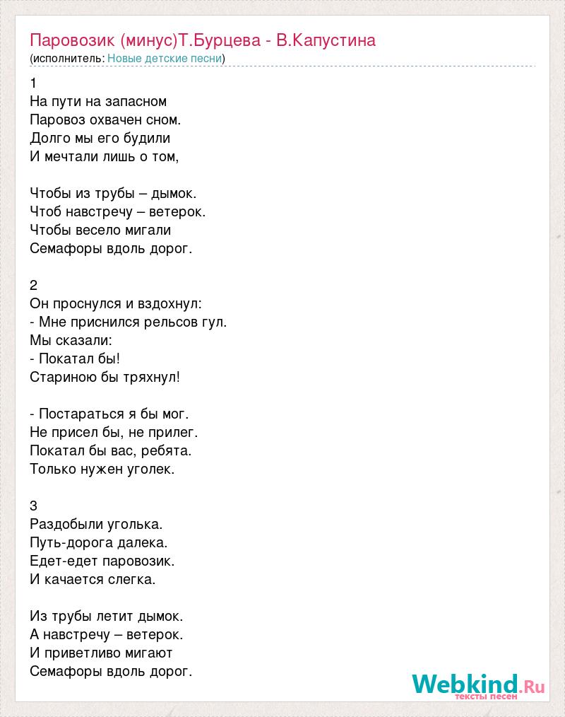 А как ты думаешь, о чем песня "Паровозик (минус)Т.Бурцева - В.Капустина" ?