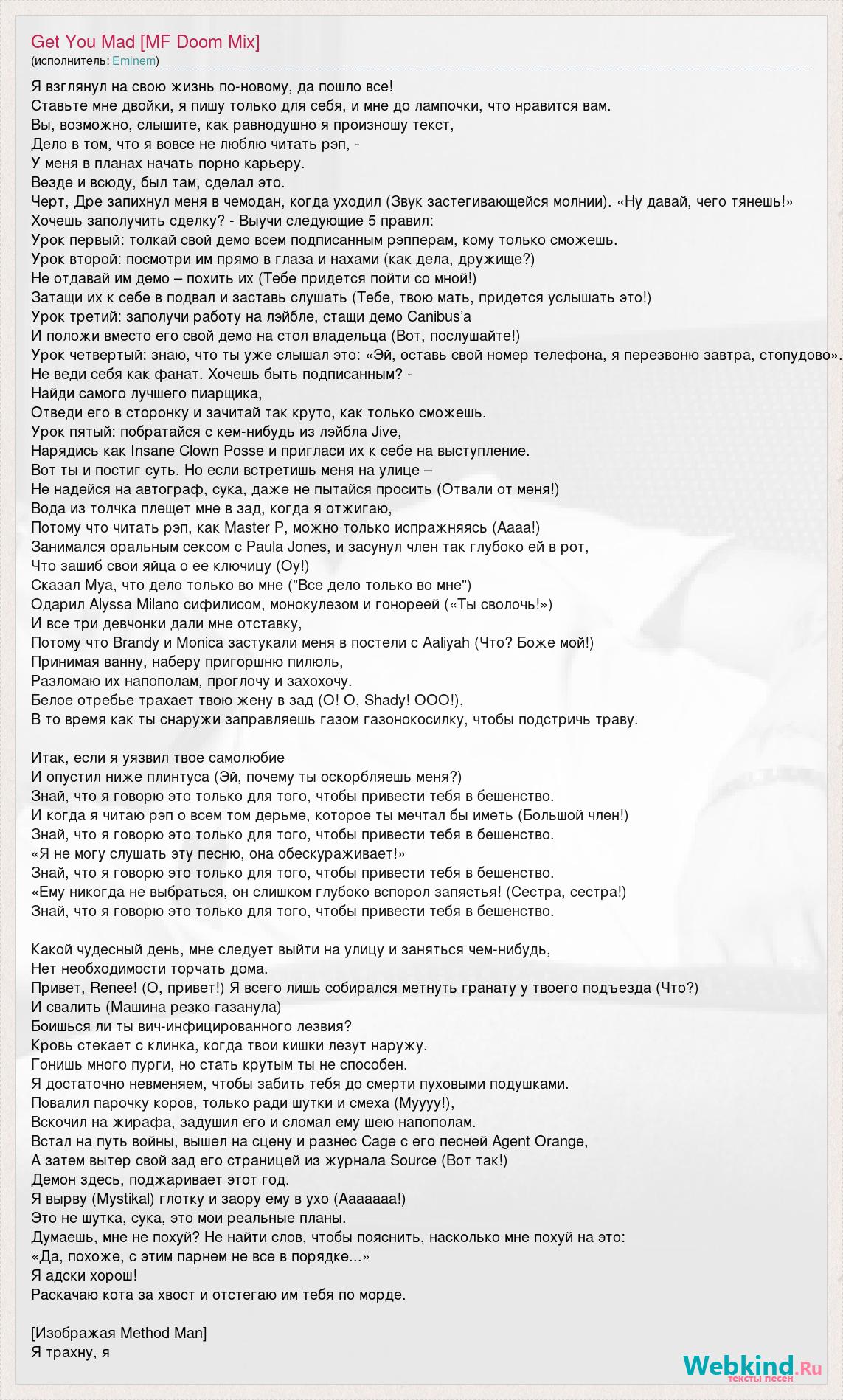 А как ты думаешь, о чем песня "Get You Mad [MF Doom Mix]" ?