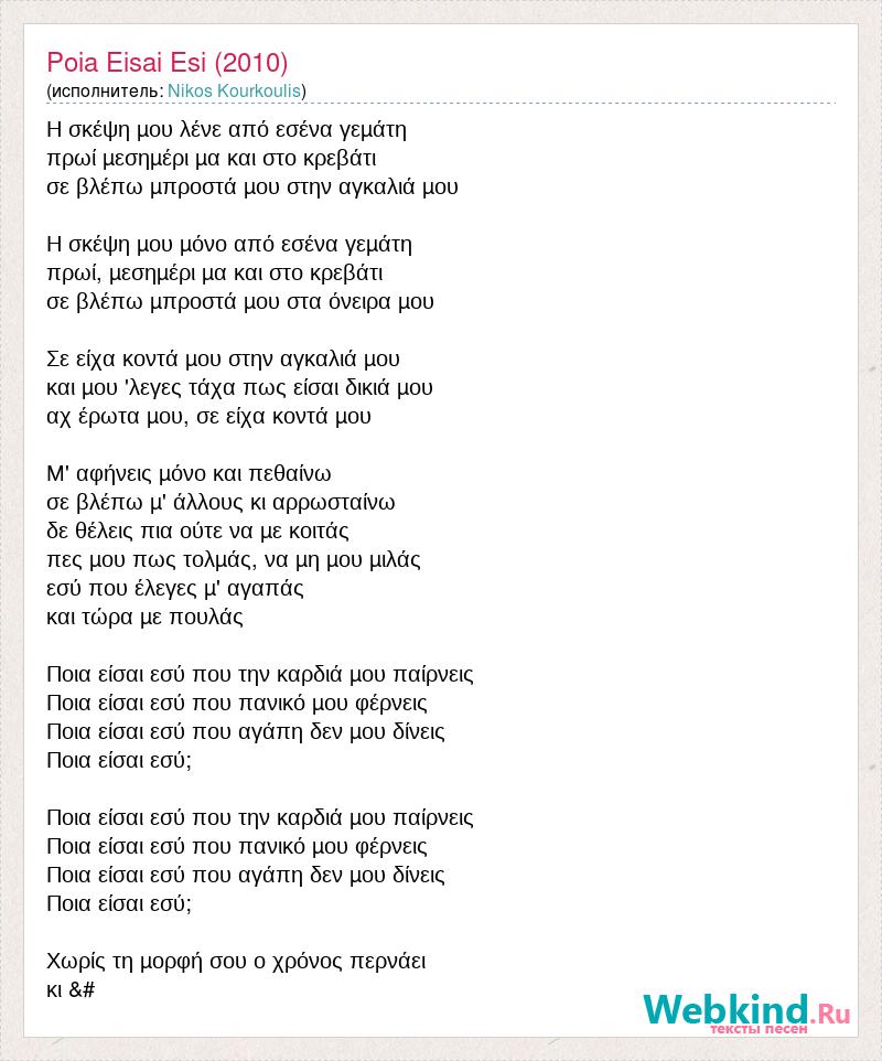 А как ты думаешь, о чем песня "Poia Eisai Esi (2010)" ?