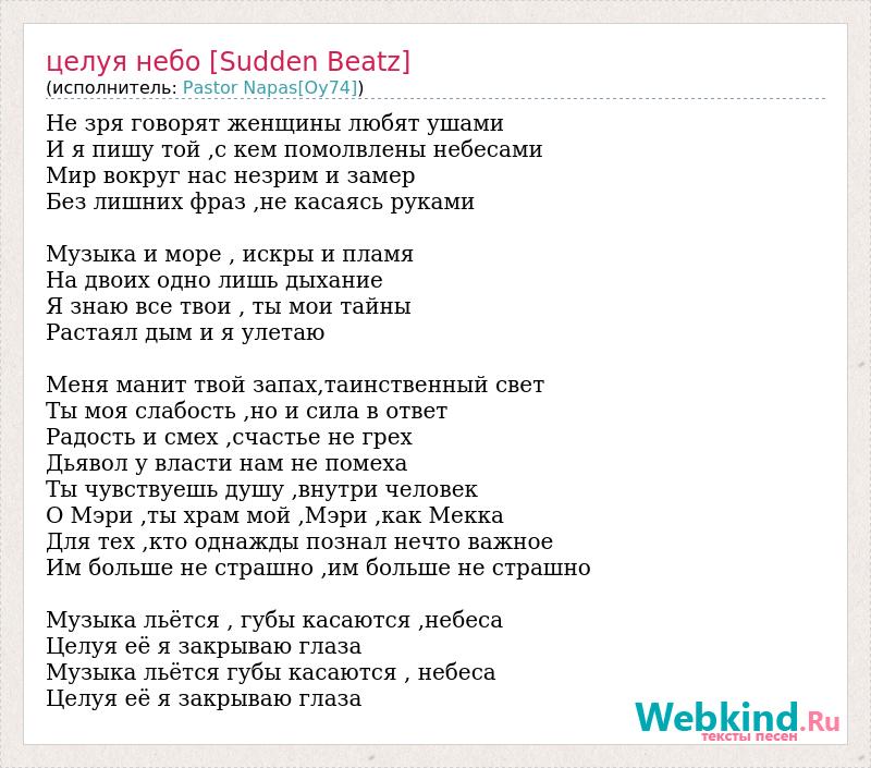 А как ты думаешь, о чем песня "Целуя небо [Sudden Beatz]" ?