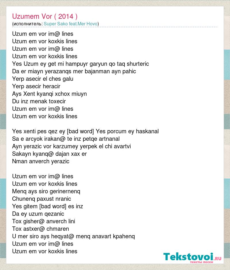 Uzum em vor im@ lines Uzum em vor koxkis lines Uzum em vor im@ lines Uzum em vor koxkis lines Yes Uzum ey get mi hampuyr garyun qo taq shurteric Da er miayn yerazanqs mer bajanman ayn pahic Yerp asecir el ches galu Yerp asecir heracir Ays Xent kyanqi xchox miuyn Du inz menak toxecir Uzum em vor im@ lines Uzum em vor koxkis lines Yes xenti pes qez ey pntrum Yes porcum ey haskanal Sa e arcyok irakan@ te inz petqe artnanal Ayn yerazic vor karzumey yerpek el chi avartvi Sakayn kyanq@ dajan xax er Nman anverch yerazic Uzum em vor im@ lines Uzum em vor koxkis lines Menq ays siro gerinernenq Chunenq paxust nranic Yes gitem sirum es inz Da ey uzum qezanic Tox gisher@ anverch lini Tox astxer@ chmaren U mer siro ays heqyat@ menq anavart kpahenq Uzum em vor im@ lines Uzum em vor koxkis lines