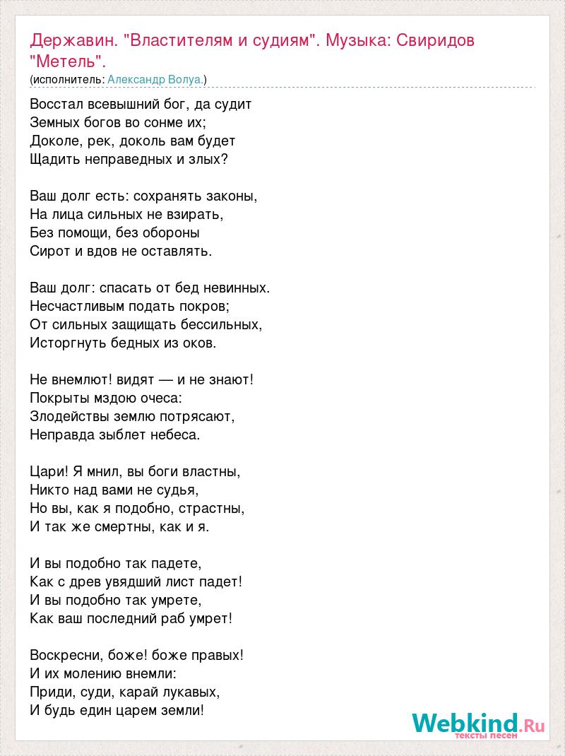 А как ты думаешь, о чем песня "Державин. "Властителям и судиям". Музыка: Свиридов "Метель"." ?