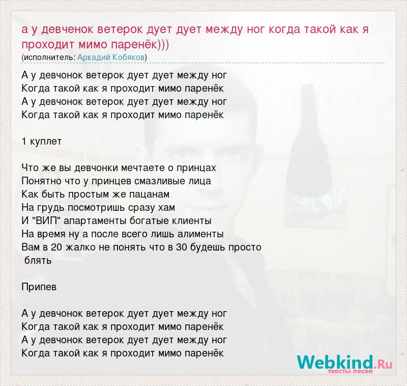Главная→Исполнители→Аркадий Кобяков→А у девченок ветерок дует дует между ног когда такой как я проходит мимо