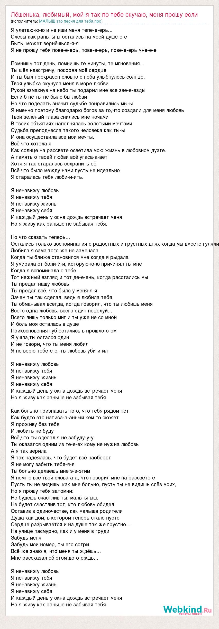 Главная→Исполнители→МАЛЫШ это песня для тебя,про тебя и о тебе!!!я знаю что ты его послушаешь→Лёшенька, любимый, мой я так по тебе скучаю, меня прошу если я тебя чем то