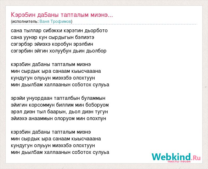сана тыллар сибэкки кэрэтин дьорбото сана уунэр кун сырдыгын бэлиэтэ сэгэрбэр эйиэхэ коробун эрэлбин сэгэрбин эйгин холуубун дьин дьолбор кэрэ5ин да5аны тапталым миэнэ мин сырдык ыра санаам кыысчааана кундугун олуьун миэхэ5э олохтуун мин дьыл5ам халлаанын со5отох сулуьа эрэйи унуордаан тапталбын буламмын эйигин корсоммун биллим мин бо5оруом эрэл диэн тыл баарын, дьол диэн тугун эйиэхэ анааммын олоруом мин олохпун кэрэ5ин да5аны тапталым миэнэ мин сырдык ыра санаам кыысчааана кундугун олуьун миэхэ5э олохтуун мин дьыл5ам халлаанын со5отох сулуьа