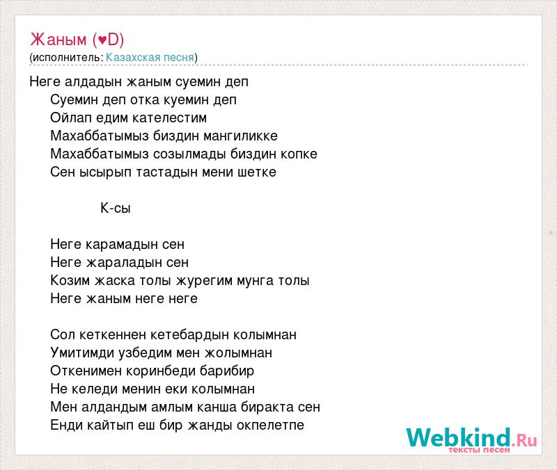А как ты думаешь, о чем песня "Жаным (♥D)" ?