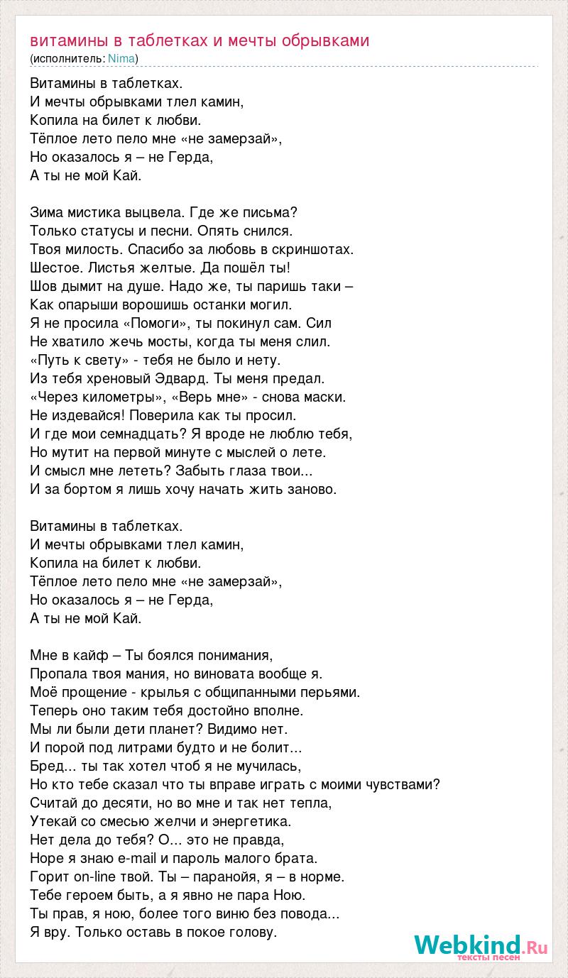 А как ты думаешь, о чем песня "Витамины в таблетках и мечты обрывками" ?