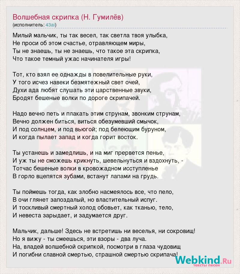А как ты думаешь, о чем песня "Волшебная скрипка (Н. Гумилёв)" ?