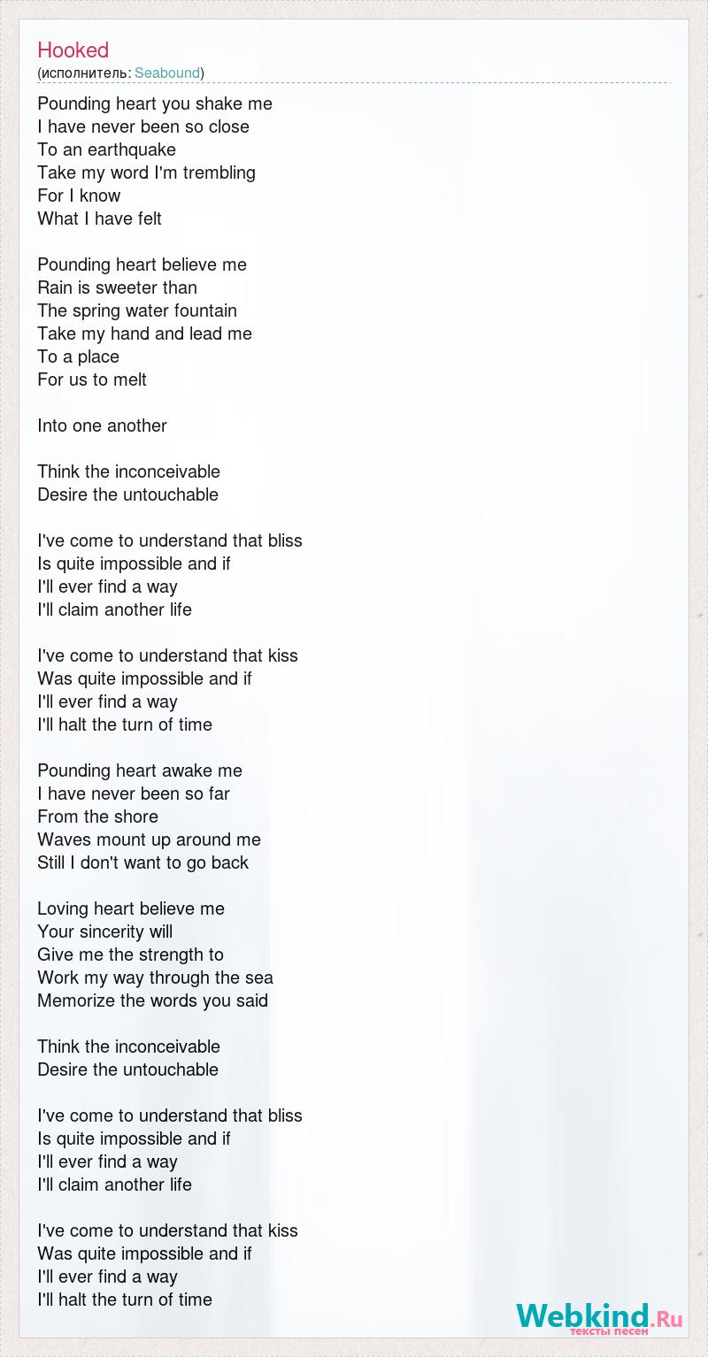 Pounding heart you shake me I have never been so close To an earthquake Take my word I'm trembling For I know What I have felt Pounding heart believe me Rain is sweeter than The spring water fountain Take my hand and lead me To a place For us to melt Into one another Think the inconceivable Desire the untouchable I've come to understand that bliss Is quite impossible and if I'll ever find a way I'll claim another life I've come to understand that kiss Was quite impossible and if I'll ever find a way I'll halt the turn of time Pounding heart awake me I have never been so far From the shore Waves mount up around me Still I don't want to go back Loving heart believe me Your sincerity will Give me the strength to Work my way through the sea Memorize the words you said Think the inconceivable Desire the untouchable I've come to understand that bliss Is quite impossible and if I'll ever find a way I'll claim another life I've come to understand that kiss Was quite impossible and if I'll ever find a way I'll halt the turn of time