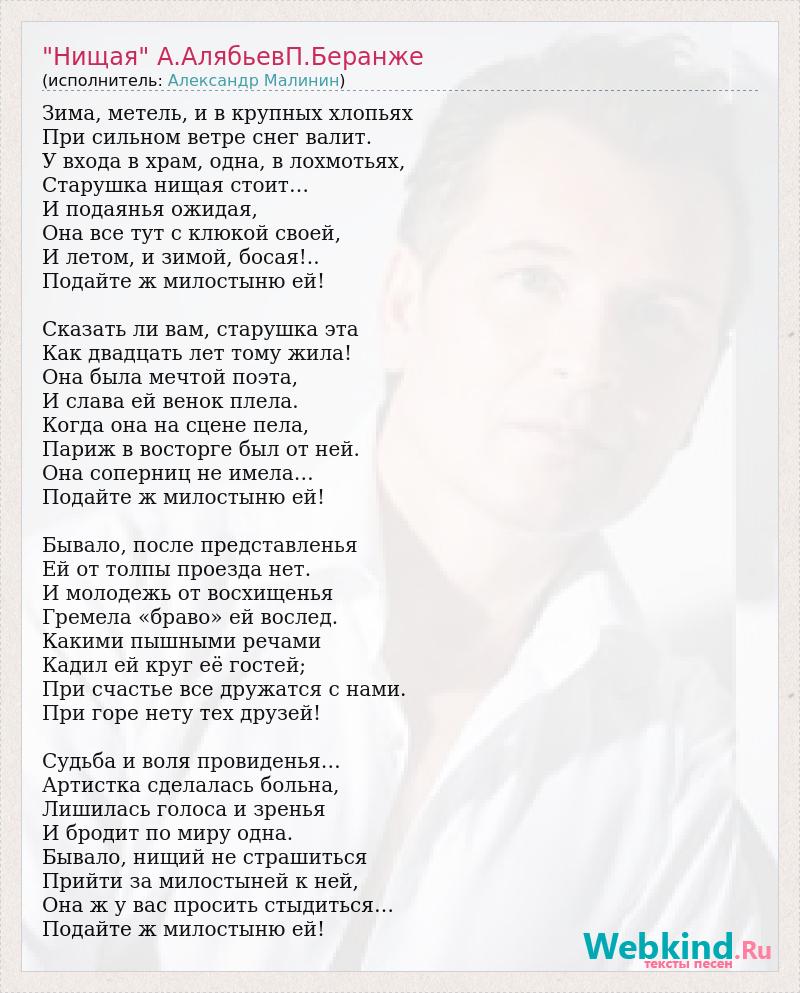 А как ты думаешь, о чем песня ""Нищая" А.АлябьевП.Беранже" ?