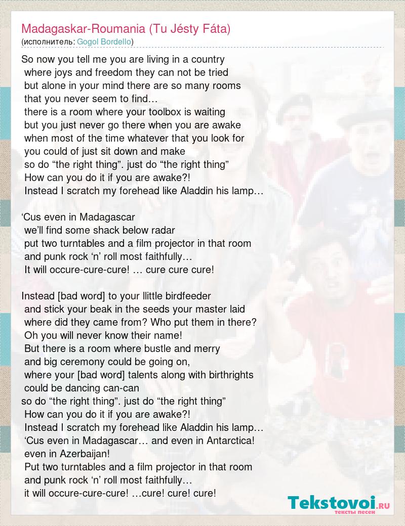 А как ты думаешь, о чем песня "Madagaskar-Roumania (Tu Jésty Fáta)" ?
