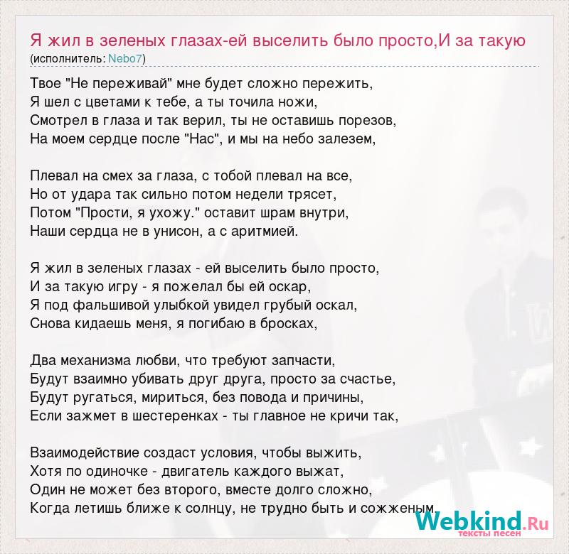 Я жил в зеленых глазах-ей выселить было просто,И за такую игру-я пожела