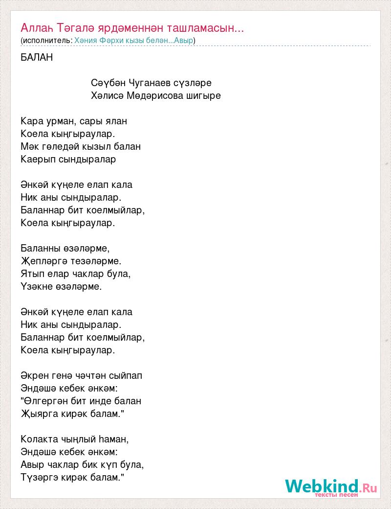 А как ты думаешь, о чем песня "Аллаһ Тәгалә ярдәменнән ташламасын..." ?