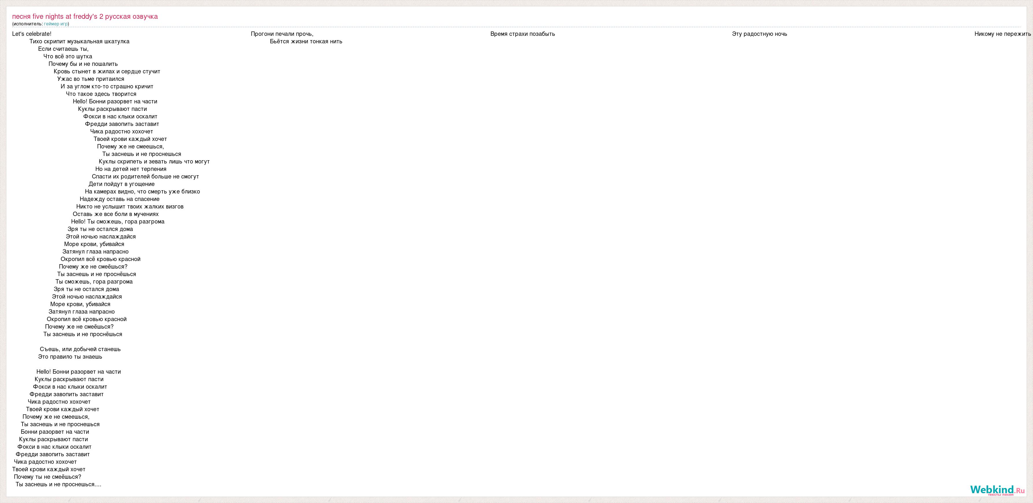 А как ты думаешь, о чем песня "Песня five nights at freddy's 2 русская озвучка" ?