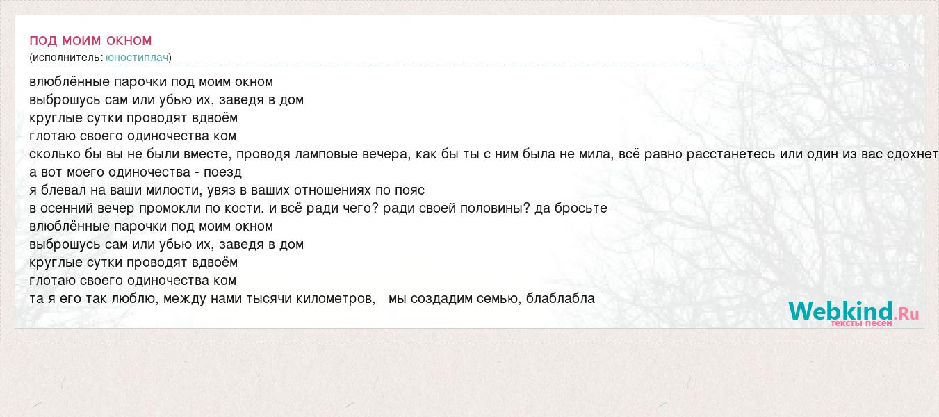 А как ты думаешь, о чем песня "Под моим окном" ?
