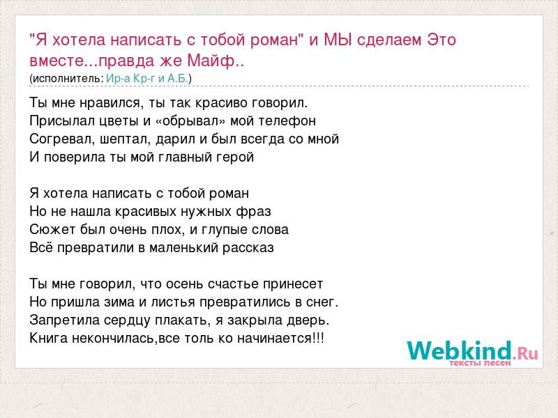 А как ты думаешь, о чем песня ""Я хотела написать с тобой роман" и МЫ сделаем Это вместе...правда же Майф.." ?