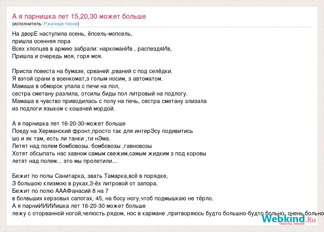 А как ты думаешь, о чем песня "А я парнишка лет 15,20,30 может больше" ?