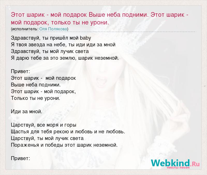 Главная→Исполнители→Оля Полякова→Этот шарик - мой подарок Выше неба подними. Этот шарик - мой подарок, только