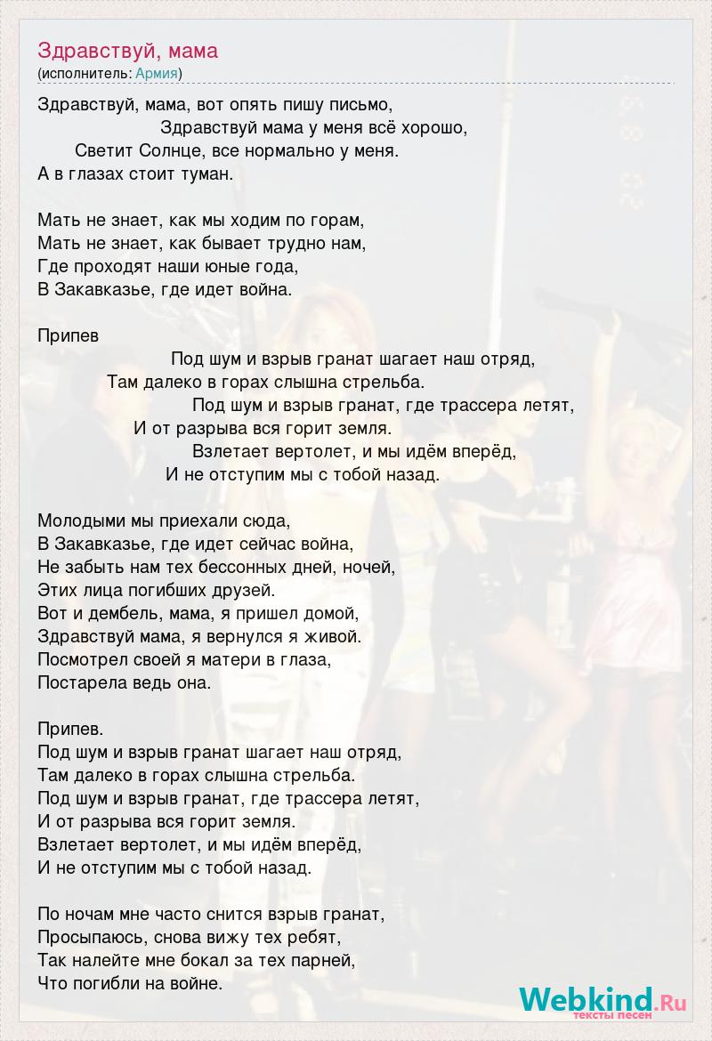 Здравствуй мама у меня всё хорошо,