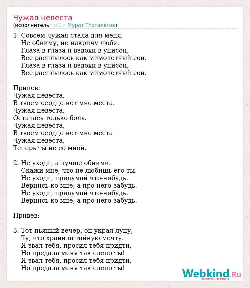 А как ты думаешь, о чем песня "Чужая невеста" ?