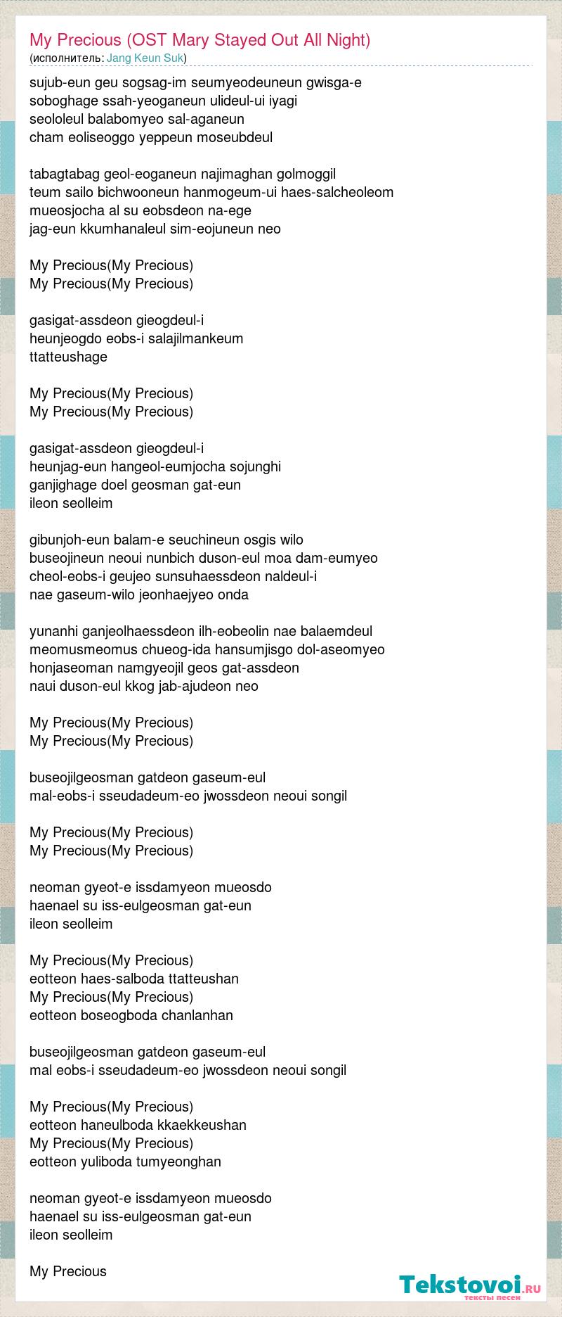 sujub-eun geu sogsag-im seumyeodeuneun gwisga-e soboghage ssah-yeoganeun ulideul-ui iyagi seololeul balabomyeo sal-aganeun cham eoliseoggo yeppeun moseubdeul tabagtabag geol-eoganeun najimaghan golmoggil teum sailo bichwooneun hanmogeum-ui haes-salcheoleom mueosjocha al su eobsdeon na-ege jag-eun kkumhanaleul sim-eojuneun neo My Precious(My Precious) My Precious(My Precious) gasigat-assdeon gieogdeul-i heunjeogdo eobs-i salajilmankeum ttatteushage My Precious(My Precious) My Precious(My Precious) gasigat-assdeon gieogdeul-i heunjag-eun hangeol-eumjocha sojunghi ganjighage doel geosman gat-eun ileon seolleim gibunjoh-eun balam-e seuchineun osgis wilo buseojineun neoui nunbich duson-eul moa dam-eumyeo cheol-eobs-i geujeo sunsuhaessdeon naldeul-i nae gaseum-wilo jeonhaejyeo onda yunanhi ganjeolhaessdeon ilh-eobeolin nae balaemdeul meomusmeomus chueog-ida hansumjisgo dol-aseomyeo honjaseoman namgyeojil geos gat-assdeon naui duson-eul kkog jab-ajudeon neo My Precious(My Precious) My Precious(My Precious) buseojilgeosman gatdeon gaseum-eul mal-eobs-i sseudadeum-eo jwossdeon neoui songil My Precious(My Precious) My Precious(My Precious) neoman gyeot-e issdamyeon mueosdo haenael su iss-eulgeosman gat-eun ileon seolleim My Precious(My Precious) eotteon haes-salboda ttatteushan My Precious(My Precious) eotteon boseogboda chanlanhan buseojilgeosman gatdeon gaseum-eul mal eobs-i sseudadeum-eo jwossdeon neoui songil My Precious(My Precious) eotteon haneulboda kkaekkeushan My Precious(My Precious) eotteon yuliboda tumyeonghan neoman gyeot-e issdamyeon mueosdo haenael su iss-eulgeosman gat-eun ileon seolleim My Precious
