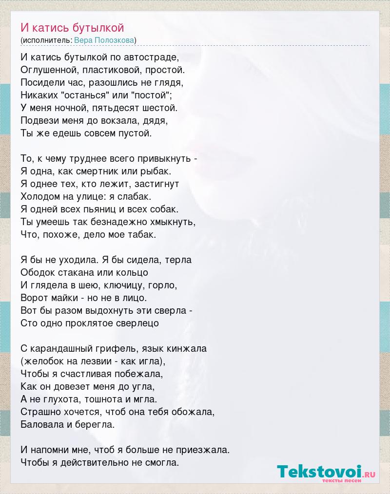 А как ты думаешь, о чем песня "И катись бутылкой" ?