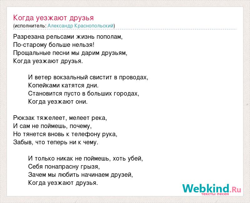 А как ты думаешь, о чем песня "Когда уезжают друзья" ?