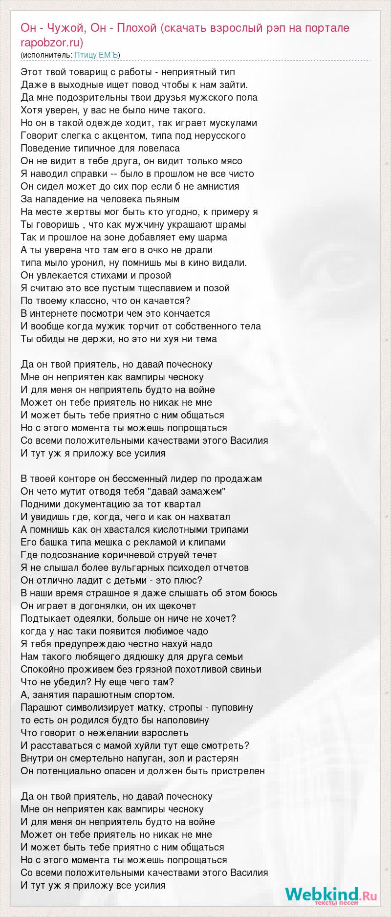 Он - Чужой, Он - Плохой (скачать взрослый рэп на портале rapobzor.ru)