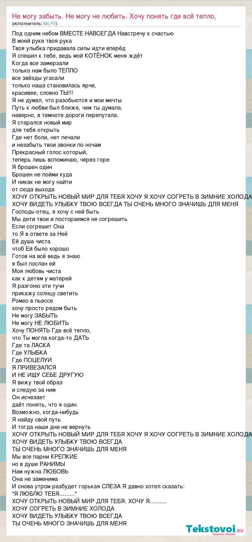 Главная→Исполнители→Мс Fil→Не могу забыть. Не могу не любить. Хочу понять где всё тепло, что ты могла