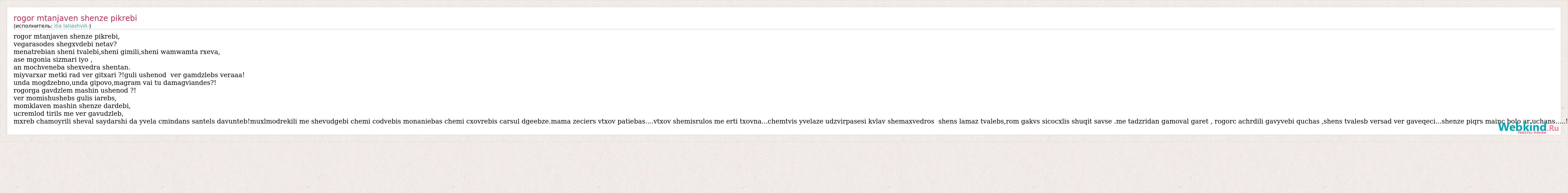 А как ты думаешь, о чем песня "Rogor mtanjaven shenze pikrebi" ?