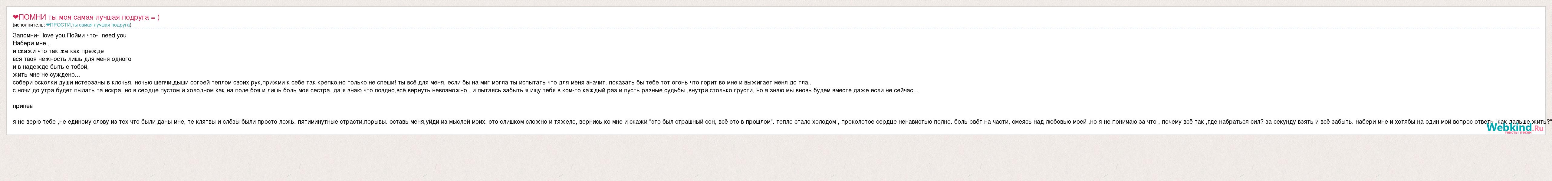 А как ты думаешь, о чем песня "❤ПОМНИ ты моя самая лучшая подруга = )" ?