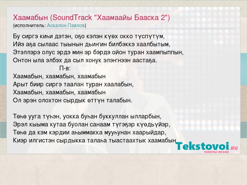 А как ты думаешь, о чем песня "Хаамабын (SoundTrack "Хаамаайы Бааска 2")" ?