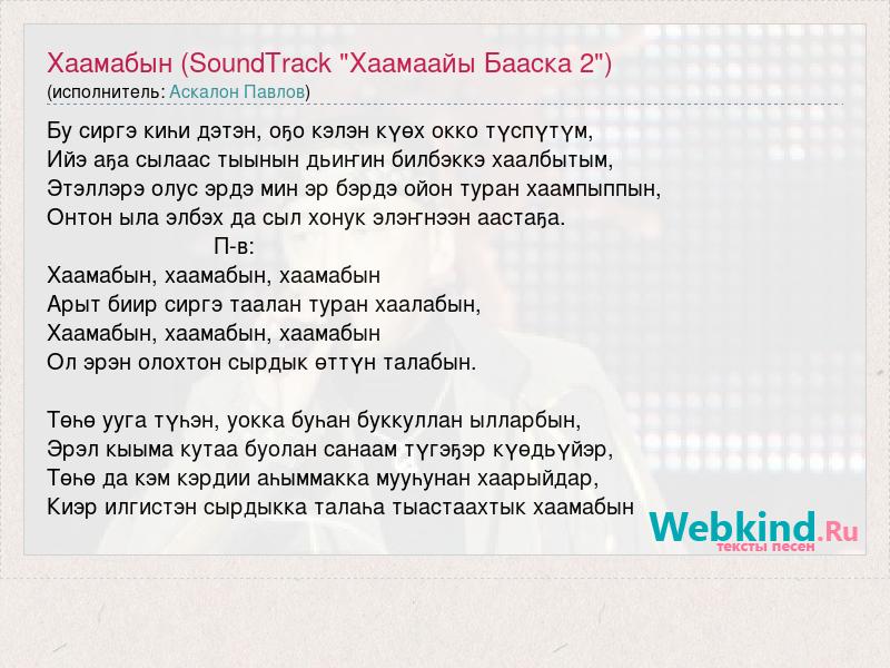 А как ты думаешь, о чем песня "Хаамабын (SoundTrack "Хаамаайы Бааска 2")" ?