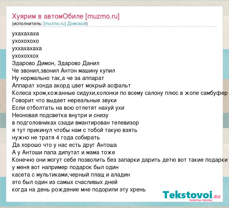 А как ты думаешь, о чем песня "Хуярим в автомОбиле [muzmo.ru]" ?